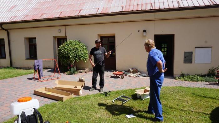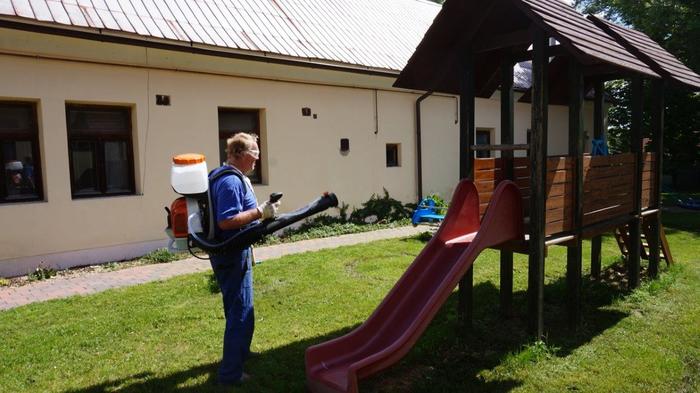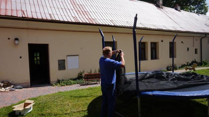 Úvod > Archiv > Mateřská škola - původní > Fotogalerie MŠ > DEZINFEKCE VENKOVNÍCH HERNÍCH PRVKŮ A SESTAVENÍ TRAMPOLÍNY